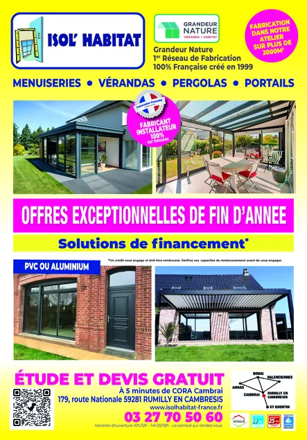 Isol’Habitat, entreprise de menuiserie à Cambrai (Rumilly-en-Cambrésis, Nord 59). Spécialisée dans la pose de fenêtres PVC et aluminium, portes d’entrée, vérandas et pergolas sur-mesure.