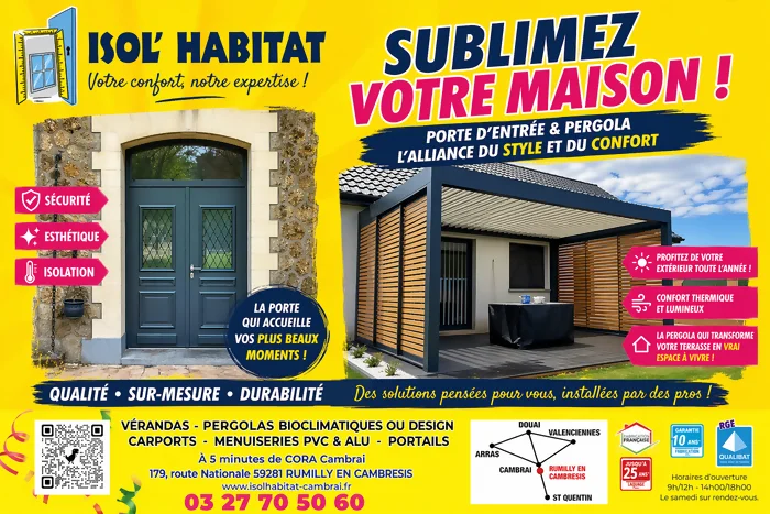 Basés à Rumilly-en-Cambrésis, nous concevons, fabriquons et posons des menuiseries, vérandas et pergolas sur-mesure. Nous intervenons à Cambrai et dans tout le Cambrésis pour remplacer vos menuiseries et moderniser votre habitat.